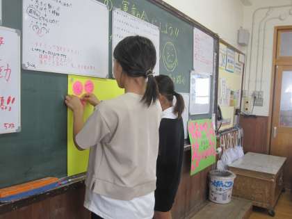 今の思いをカードに書いて、みんなでポスターにまとめました。