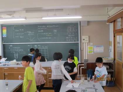 はじめに、道具を取りに行くときの通り道や、実験するときは椅子を机のしたに入れて、立って行うなど、理科室の約束を確かめました。