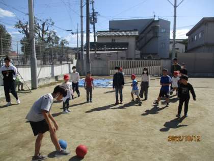 大なわ、ドッジボール、おにごっこ、だるまさんがころんだ…など、各グループが決めた遊びを楽しんでいました。