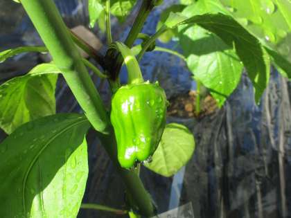 さて、先週にピーマンの実のようなものを見つけていたのですが、それがどんどん成長し、「ピーマンってこんな風にできるんや!」と大発見。