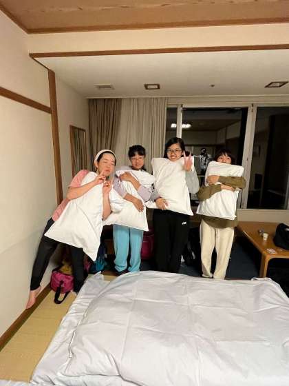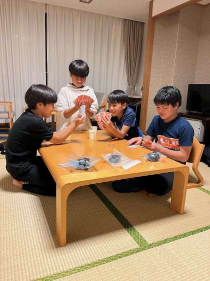 お布団の準備ができているお部屋とウノやトランプで遊んでいるお部屋、それぞれです。