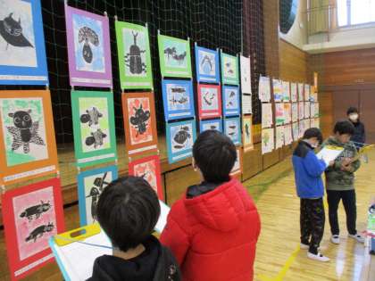 3時間目に、校内作品展の鑑賞を行いました。今日はほかの学年の作品も鑑賞できるということで、意欲的に鑑賞する姿が見られました。鑑賞中には、「ぼくもこんな作品を作ったな。」「来年は、こんな作品を作るんだ。」といった感想もありました。