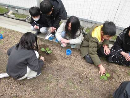3年生の理科の学習に向けて、キャベツの苗を植えました。春になってモンシロチョウが卵を産んでくれるといいね。