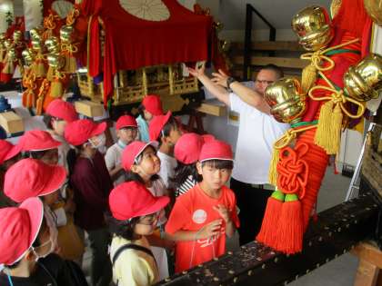 はばたき学習「祭の心」で松尾祭のお神輿を見学しに御旅所へ校外学習に行きました。