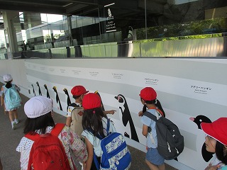 京都水族館では1年生と2年生が「なかよしペア」になって、2年生が1年生をリードしながら水族館の中をめぐりました。