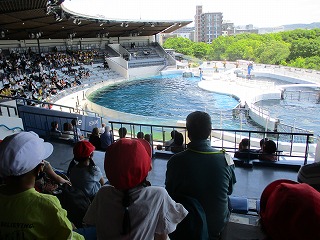最後にイルカスタジアムで、みんなでイルカのショーを見ました。