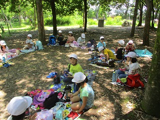 水族館の見学が終わった後、梅小路公園でお弁当を食べました。みんなで食べるととっても楽しいです。お弁当を準備してくれたお家の人にも感謝です。