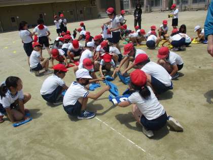 体育科「リレー」の学習で、メイトでの学習を行いました。