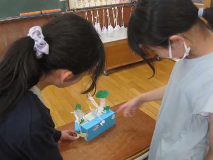 今日は、工夫して作ったお互いの作品を鑑賞しました。