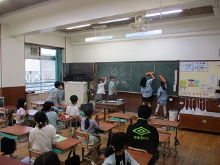 西大路小学校では、4〜6年生が、球技クラブ、室内スポーツクラブ、ものづくりクラブ、室内ゲームクラブの4つに分かれて活動します。