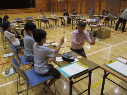 5年生は総合的な学習の時間に、京都の伝統工芸について学習を進めています。今日は、西大路で金箔押しのお仕事をされている職人さんたちにお越しいただき、金箔押し体験をしました。