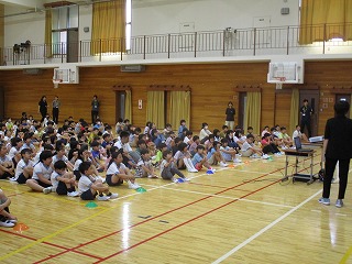校長先生が子どもたちに「ふだん体を大切にするためにしていることは?」と問うと、たくさんの手が挙がり、子ども達から「お風呂に入って、体を清潔にしています」「朝ご飯をしっかりたべています」という答えがありました。西大路小には、普段から体を大切にすることを意識できている人が多いです。