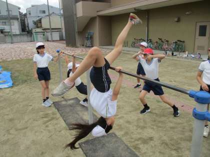 体育の学習では、鉄棒に取り組んでいます