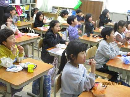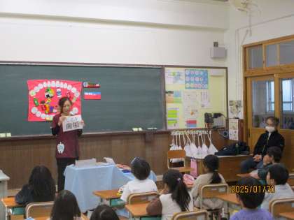 1年生は、5時間目に歯科衛生士さんと歯科医さんをお招きし、歯みがきについて勉強しました。「どうして虫歯になってしまうのか」「虫歯にならないために、どうやって歯みがきをしたらいいのか」について教えてもらい、実際に歯みがきの練習もしました。授業の最後には、「今日教えてもらったみがき方で、虫歯にならないようにしたい」という振り返りがありました。