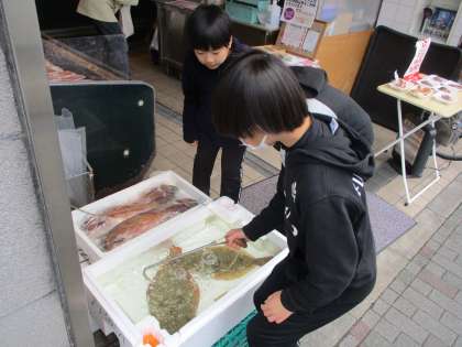 お店では、魚を運んだり商品を袋詰めしたりしました