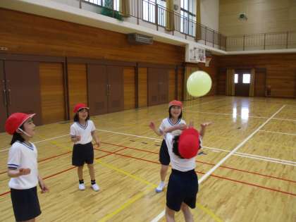 体ほぐしのうんどうあそびで、おにごっこと風船バレーをしました。おにごっこでは中間休みの直後にも関わらず、汗びっしょりで元気に走っていました。