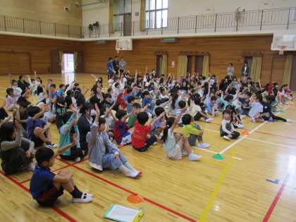 昼休みに第1回の児童集会を行いました