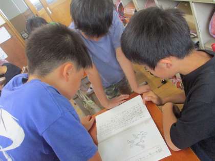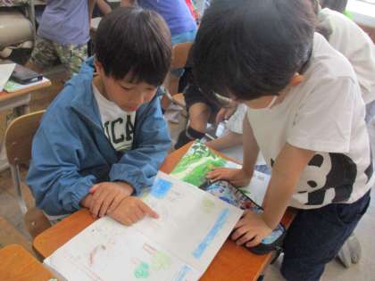 今日は実際に自分が書いたノートを友達に見せながら、想像したことを伝えあいました。
