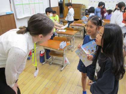 今日は、ALTと一緒に学習を進めました。友達とあいさつをして好きな物をたずねあいました。友達にたずねるだけでなく、ALTにも積極的に好きな物をたずねていました。色々な人とのやり取りを通して、新たに友達のことを知ることができました。