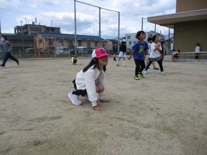 中間休みに、みんなあそび係が企画してくれた「だるまさんがころんだ」で2年生のみんなで遊びました。全員が終始笑顔で楽しんで遊ぶことができました。