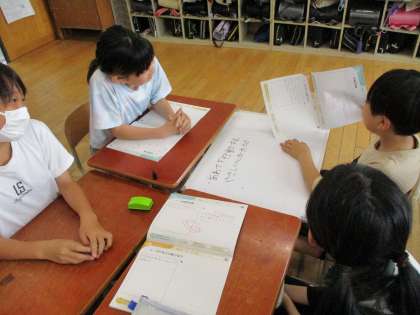 6年生の道徳では、「心づかいと思いやり」という学習をしました。「思い」を「思いやり」に変えるためには、どのような心を大切にしたいかを班で話し合いました。その中から、「相手の立場に立って考える心」や「勇気を出す心」が大切であるという考えが出てきました。