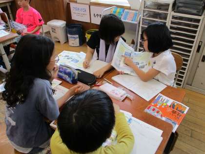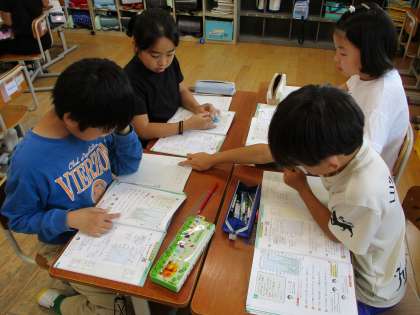各教科の学習の中では、学習の流れを大切にしながら1時間の授業を進めています。グループ交流では、自分の考えと友達の考えを比べながら話を聞いたり、考えの根拠となる資料を指し示したりして、考えを伝え合っています。さらに交流が上手になるようにサポートしていきたいと思います。
