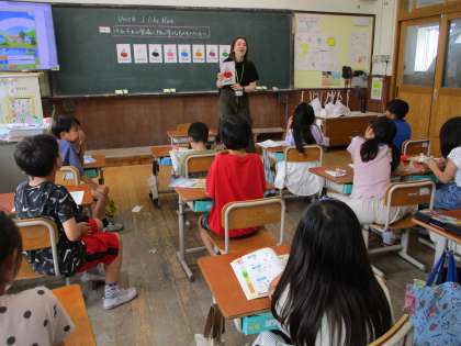 外国語活動ではUnit4「I like blue.」の学習を進めています。