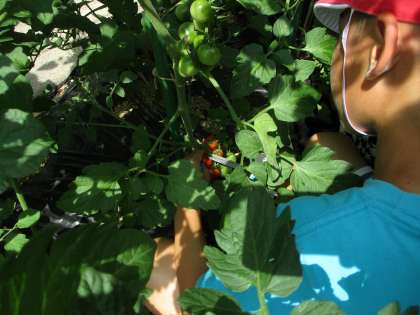 毎日一生懸命お世話をしていたミニトマトの収穫をしました。お世話を毎日頑張っていたからこそ収穫はうれしいですね。お家の人と一緒に食べてみてくださいね。また感想を教えてください。