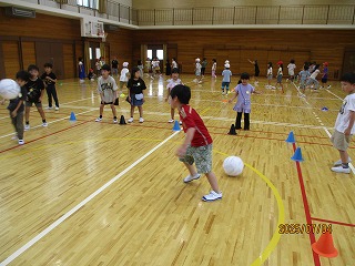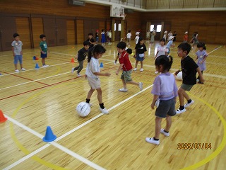 転がしドッジボールのルールにも少しずつ慣れてきました。
