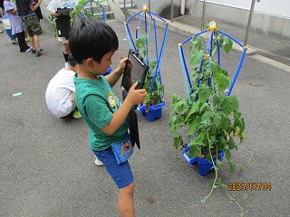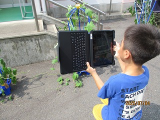 自分の朝顔のつぼみや花、つるの先、葉を写真でとりました。