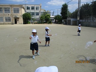 水鉄砲の次は、みんなでしゃぼん玉遊びです。