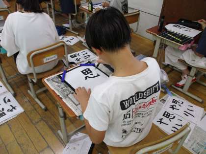 6年の書写では、文字の大きさと配列・点画のつながりを意識して書く学習を行いました。一画一画、集中しながら正しい姿勢で書こうとする姿が見られました。