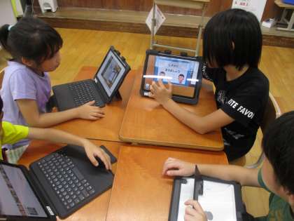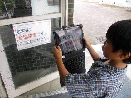 国語の学習で学校の中で工夫されている看板を見つけました。2学期から使っているipadを使って、写真を撮りました。「大事な部分は赤文字で書いてある」や「低学年でもわかるようにふりがなが書いてある」など工夫されている看板を見つけることができました。