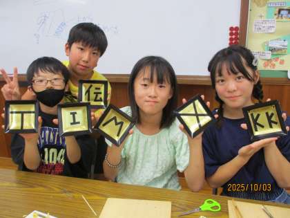 そろーり金箔をのせるも歪んだり、はみ出したり・・・