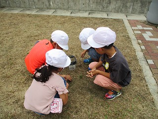 生活科の学習で、学校にいる生き物を探しました。