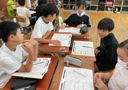いよいよ来週、6年生は修学旅行に行きます。修学旅行に向けて、班で集まり班の名前や取り組みたいめあてについて考えました。しおりも参考にしながら、修学旅行に向けて思いをふくらませています。