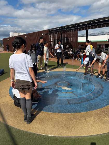噴水で遊んだり