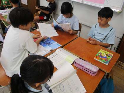 1年生が読書を好きになってもらえるようなおすすめの本をひとり1冊選び、話し合い活動を行いました。