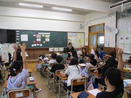 今日は、「朝ごはんをしっかりと食べよう」というテーマで栄養教諭と一緒に学習を進めました。朝ごはんを食べることで「頭がよく働いて勉強に集中できる。」「元気に学校に行ける。」ことに気付き、赤、黄、緑の栄養をバランスよく食べることの大切さについて考えを深めることができました。