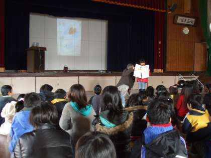 今日、24日の朝会では、1・2・6年から作文発表がありました。全校のみんなの前で発表するのは、どきどきしたことでしょう。