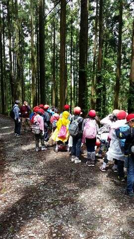 天候が少し心配でしたが,薄日が差してきました。みんな元気に山登りをしています。カッコーが出迎えてくれました。天狗杉でお弁当を食べています。