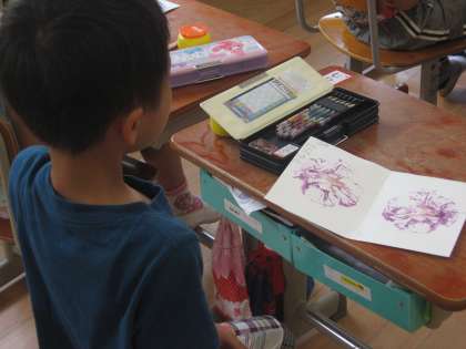 その花を使って,画用紙に染め出しをしました。