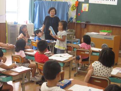 教科書の例文が,スイカだったので,すきなものと言えば,食べ物を思い出す子が多かったです。