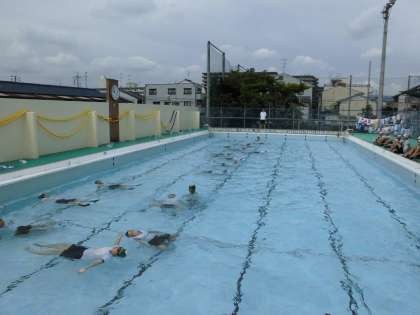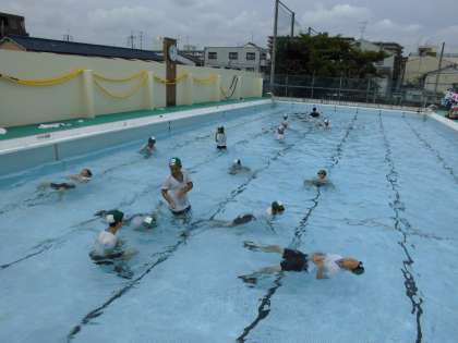 5・6年生が,着衣水泳をしました。,水着と違う体操服で泳いでみたり,身近にあるペットボトルを浮き輪の代わりにしたりしました。もしもの時に,自分の身を守るための経験になったと思います。今日で,今年度の水泳学習は終わりました。