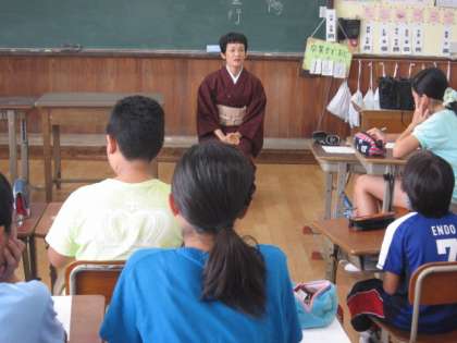 地域にお住まいの茶道の先生に来ていただいて「茶の心」を教えていただきました。