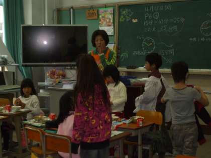 3年生になると、給食の配ぜんもずいぶん手ぎわよくなりました。