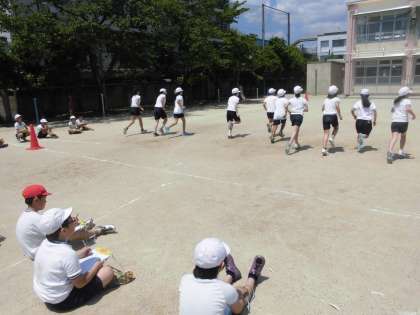 5・6年生は合同で新体力テストをしました。非常に暑い中でしたが,ソフトボール投げや立ち幅跳び,20mシャトルランに取り組みました。最後まであきらめず一生懸命頑張っていました。