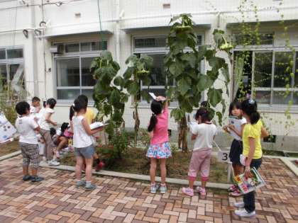 そこで,2時間目,理科の時間に花が咲いた後,植物はどのように育っているかどうかを観察に行きました。