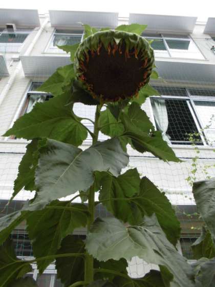 3年生は,4月から中庭でヒマワリとホウセンカを育てています。