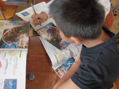 社会「水産業のさかんな地域」では,資料から沖合漁業はどのように行われているのかを考え,一人一人がどのように考えたのか,班で話し合いました。